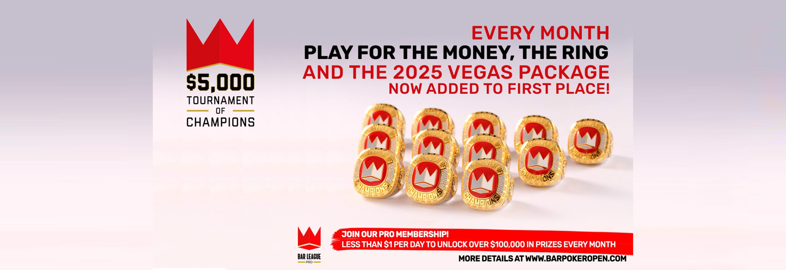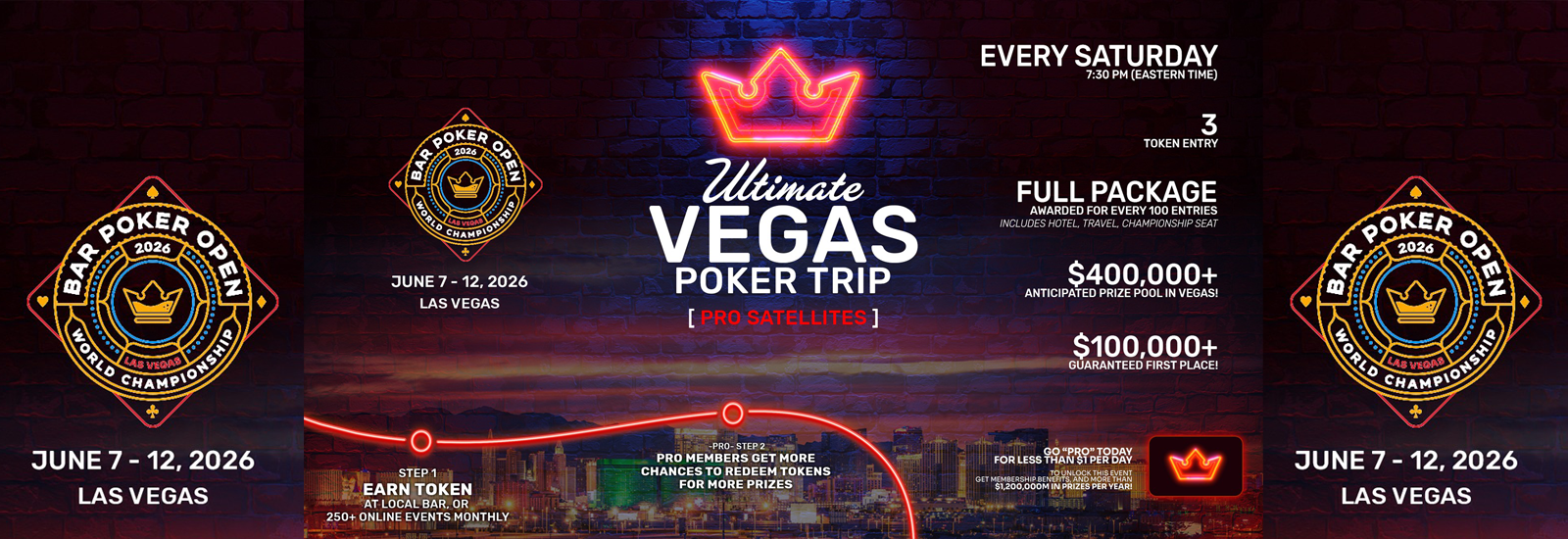 Vegas Or Bust gives our members additional chances to win their way into the upcoming Bar Poker Open World Championship in Las Vegas. Top finishers can earn championship seats, travel stipend, and hotel stay.